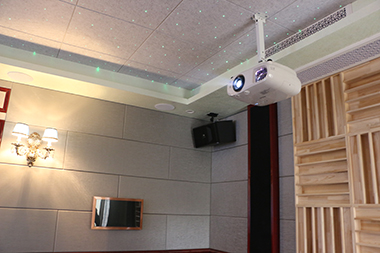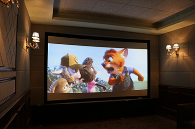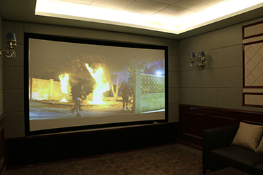 業(yè)主對(duì)影音需求很高,所以在地下室有一個(gè)專(zhuān)門(mén)的房間作為私人影院。我們采用了美國(guó)James 63FX入墻式揚(yáng)聲器+1只James EMB1000低音炮組成5.1.4環(huán)繞音效,Marantz功放搭配威動(dòng)在線(xiàn)影庫(kù),營(yíng)造了逼真的聲效,讓業(yè)主感受到身臨其境的影音效果,我們綜合業(yè)主對(duì)視頻畫(huà)面品質(zhì)的要求和預(yù)算,推薦使用了Espon TZ1000配合133寸JK透聲幕布。