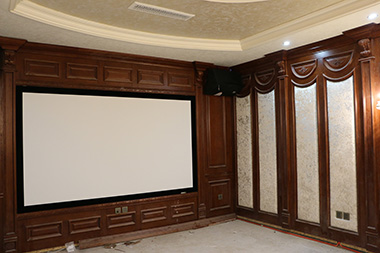 從前期的施工就進(jìn)行了專業(yè)的聲學(xué)設(shè)計(jì):聲場(chǎng)測(cè)試、聲學(xué)處理、設(shè)備定位的精確測(cè)算、吸音與擴(kuò)散的專業(yè)布局,觀影視角的分析規(guī)劃,多方面的聲學(xué)細(xì)節(jié)考慮,都是為了做出完美專業(yè)的視聽效果。搭配control4智能中控系統(tǒng),智能燈光控制系統(tǒng),擺脫繁雜的遙控器、操作復(fù)雜、不會(huì)操作的帶來的使用頻率低,器材的浪費(fèi)。