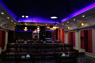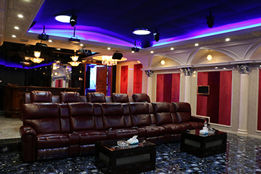 在別墅的地下負(fù)一層220平方的空間里,140平方打造成7.2.4聲道杜比全景聲家庭影院,視聽(tīng)室進(jìn)行了精密的聲學(xué)空間規(guī)劃、聲學(xué)設(shè)計(jì)裝修材料設(shè)計(jì)等,以及一個(gè)80多平方的酒吧智能燈控系統(tǒng)。項(xiàng)目采用美國(guó)Control4智能家居中控為主導(dǎo),整合了家庭影院所有設(shè)備以及全宅的智能燈光控制,從而達(dá)到一鍵式操作系統(tǒng)。