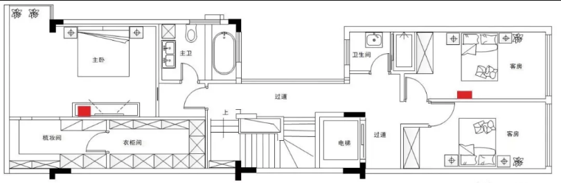 二樓和三樓的房間主要是臥室,臥室適合部署墻面AP,一是超薄小巧的外觀和其他開關(guān)融合在一起,更加美觀;二是通過調(diào)節(jié)發(fā)射功率,實(shí)現(xiàn)更低輻射更加健康。